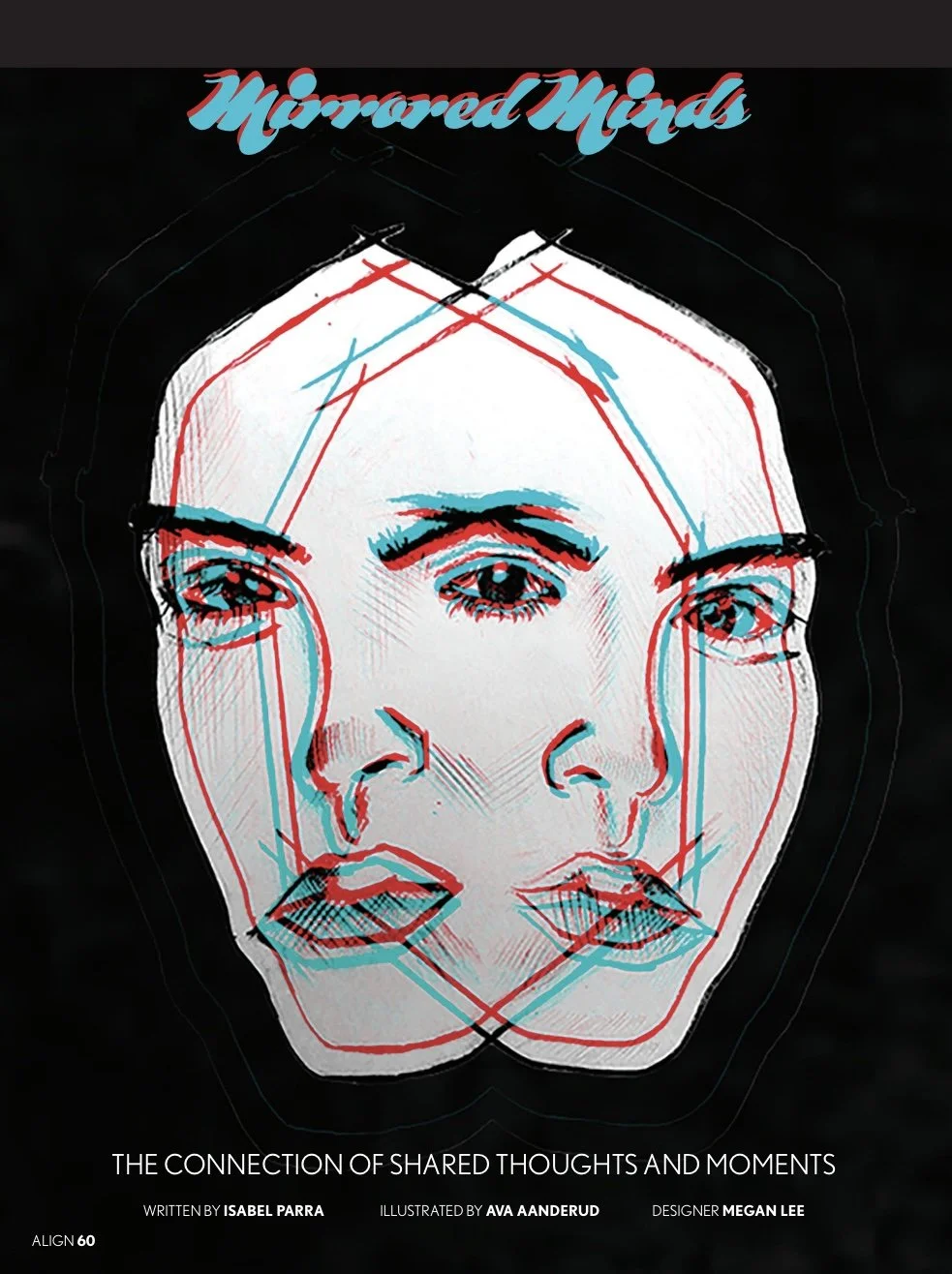 These pieces come from my work with Align Magazine, a student-run publication where I contributed both illustration and design. The images highlight my design process and approach to combining visuals with editorial content.